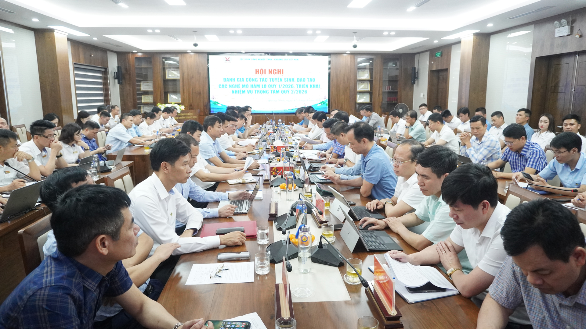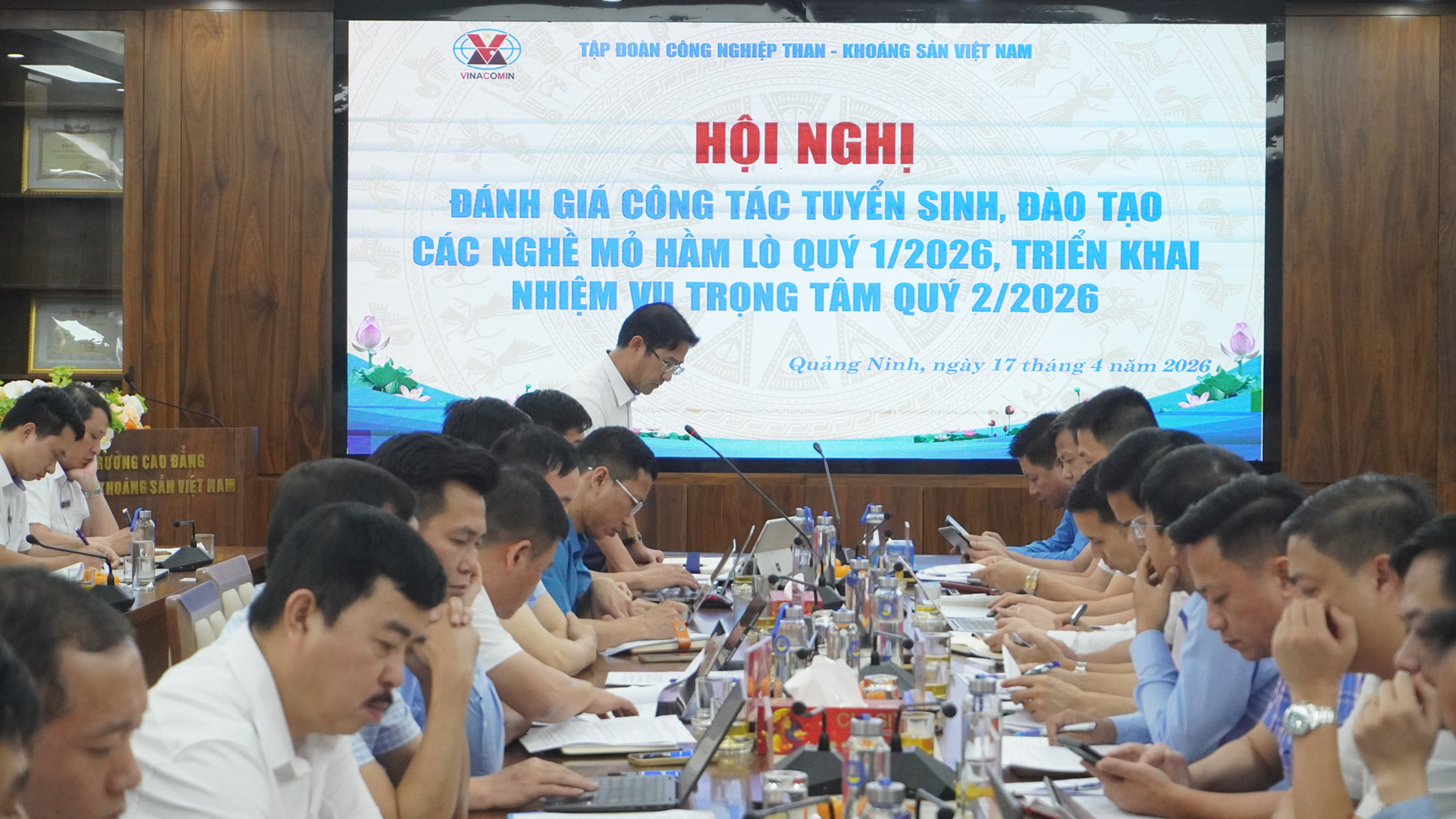 Sáng ngày 17/4/2026, Tập đoàn Công nghiệp Than – Khoáng sản Việt Nam (TKV) tổ chức Hội nghị đánh giá công tác tuyển sinh, đào tạo các nghề mỏ hầm lò Quý I/2026 và triển khai nhiệm vụ trọng tâm Quý II/2026 theo hình thức trực tuyến tại hai điểm cầu Hà Nội (Trụ sở điều hành TKV) và Quảng Ninh (Tại trụ sở chính Trường Cao đẳng Than – Khoáng sản Việt Nam). Hội nghị do đồng chí Nguyễn Quốc Tuấn – Trưởng Ban Tổ chức Nhân sự TKV chủ trì.